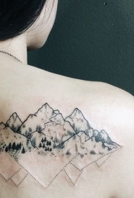 背部点刺风格黑色线条狐狸和狮子头纹身图案