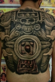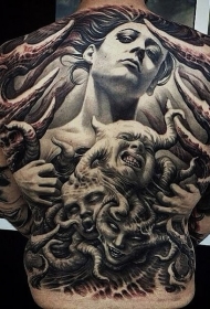 背部神奇的黑白帆船灯塔和水下世界纹身图案