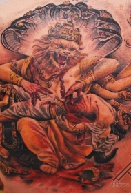 背部插画风格彩色法蒂玛之手和花朵纹身图案