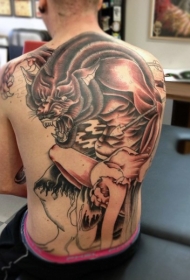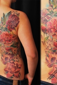 背部彩风格美丽的天鹅与花蕊纹身图案