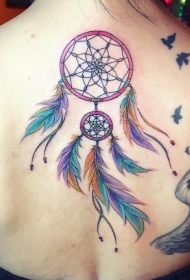 美丽的彩色捕梦网new school背部纹身图案