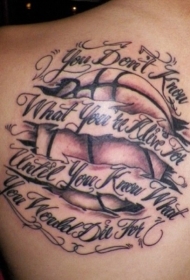 背部old school篮球与字母纹身图案