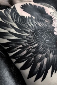 背部黑色点刺的鹰纹身图案