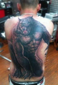 背部巨大的强壮狼人个性纹身图案