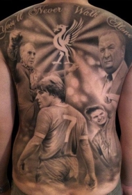 满背黑灰足球运动员和字母纹身图案