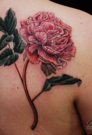 背部经典的彩绘绽放玫瑰花纹身图案