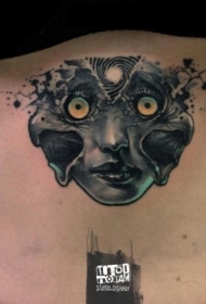 背部神秘的new school恶魔女人纹身图案