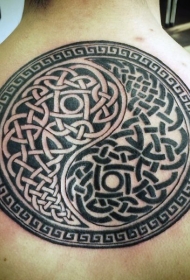 背部有趣的凯尔特风格阴阳八卦纹身图案