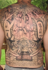 满背宗教主题人物纹身图案