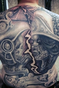 背部古代的玛雅部落主题纹身图案