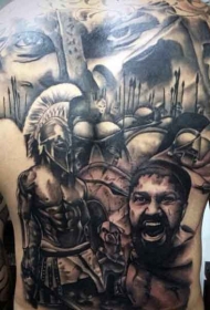 满背巨大的斯巴达主题战士纹身图案