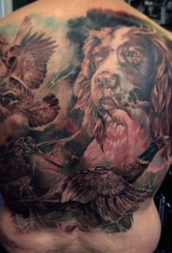 背部写实风格的各种动物纹身图案