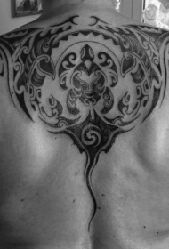 背部令人难以置信的黑色波利尼西亚饰品纹身图案