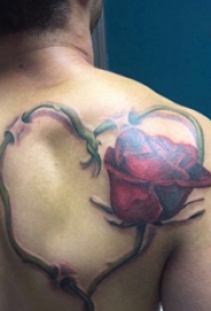 欧美玫瑰纹身 男生背部欧美玫瑰纹身图片