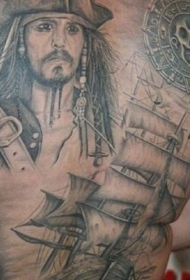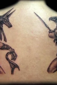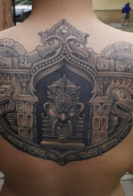 背部及颈部巴洛克风格饰品黑白纹身图案