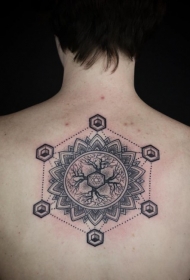 颈部和背部明亮的黑色巴洛克风格梵花纹身图案