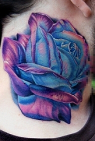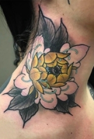 女生脖子上彩绘水彩素描唯美花朵纹身图片