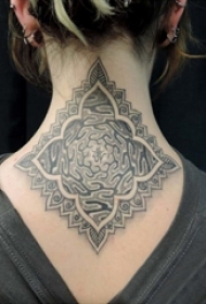 女生颈后黑色线条创意文艺小清新莲花纹身图片