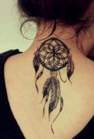 女生脖子上黑灰素描点刺技巧文艺捕梦网纹身图片
