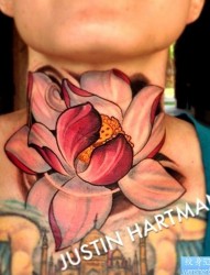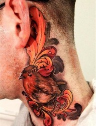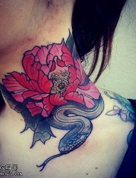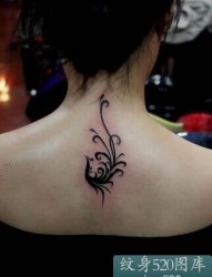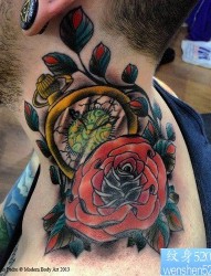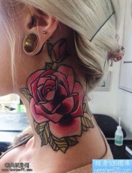 纹身推荐一款女性脖子玫瑰花纹身图案