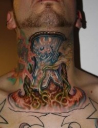 颈部纹身图片:颈部彩色蜘蛛纹身图片纹身作品