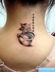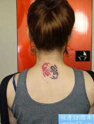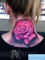 纹身520图库:美女后颈部漂亮的玫瑰花文身图片作品
