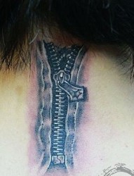 颈部纹身图片:颈部拉链纹身图片纹身作品