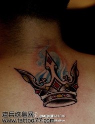 颈部纹身图片:颈部彩色皇冠纹身图片纹身作品