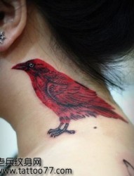 颈部纹身图片:美女颈部爱心纹身图片作品
