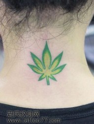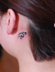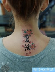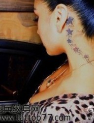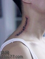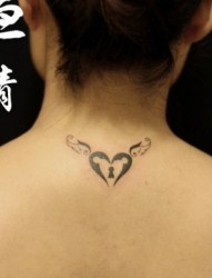 女孩子颈部好看的图腾爱心翅膀纹身图片