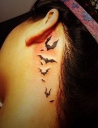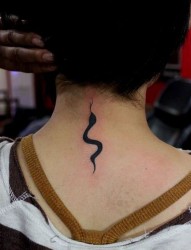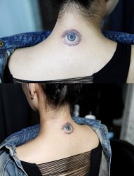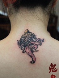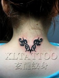 女人后脖子漂亮时尚的图腾猫咪纹身图片