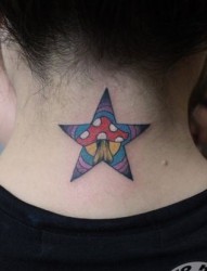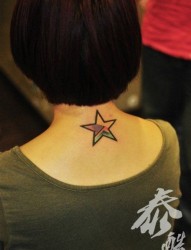 女人后脖子潮流时尚的图腾四叶草纹身图片