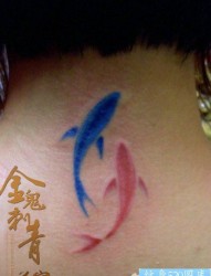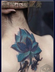 女人后脖子潮流经典的莲花小鲤鱼纹身图片
