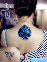 女人后脖子潮流好看的图腾黑桃纹身图片