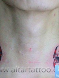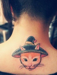 一幅女人颈部熊猫纹身图片由纹身520图库推荐