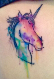 女生手臂上彩绘彩虹和几何线条独角兽纹身图片