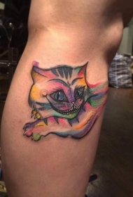 小腿童话彩虹色式的微笑咧嘴猫纹身图案