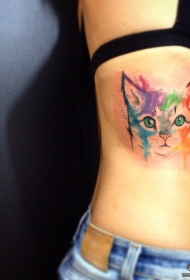 侧腰莲花蝴蝶彩色泼墨纹身图案