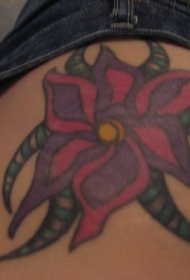 腰部彩色高山百合花纹身图案