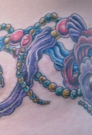 女性腰部彩色珠宝纹身图案