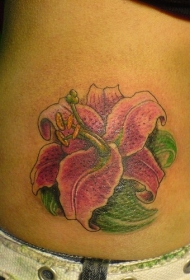 腰部彩色逼真的百合花纹身图案