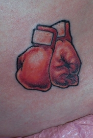 腰侧彩色两个红色拳击手套纹身