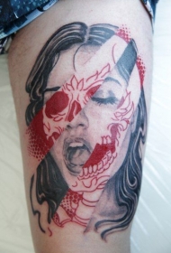 腿部巨大丰富多彩的孔雀羽毛纹身图案