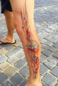 男生小腿上彩绘抽象线条创意纹身图片