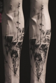 男生手臂上黑灰素描几何元素创意抽象纹身图片