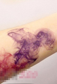 女生手臂上黑色点刺水墨抽象线条纹身图片