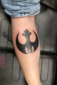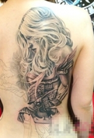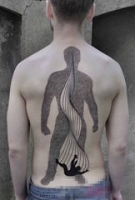 男生后背上黑色点刺抽象线条人物轮廓纹身图片
