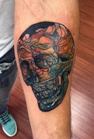 男生手臂上彩绘抽象线条骷髅形状纹身图片