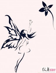 女生背部黑色植物素材抽象线条生命树纹身图片