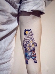 男生手臂上彩绘抽象线条船锚和热气球纹身图片